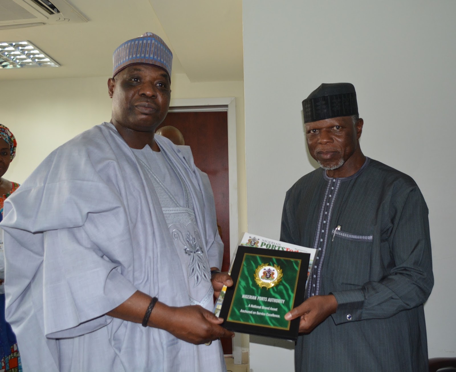 | Managing Director NPA, Malam Habib Abdullahi presenting a plaque and copy of recent edition of the official journal of the NPA to the CGS, Col. Hameed Ali(Rtd) at the courtesy call |