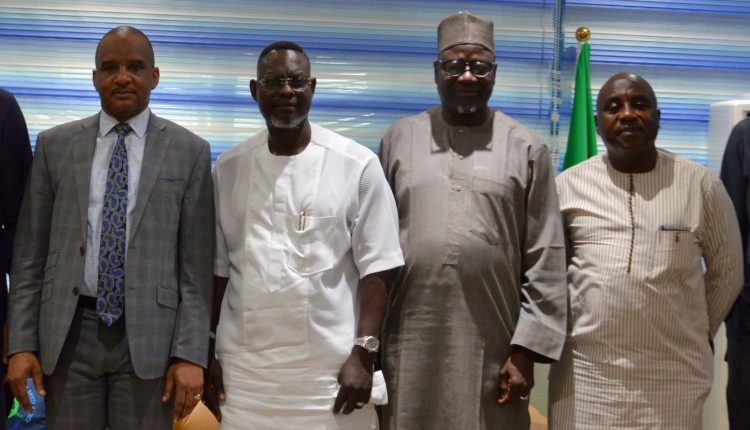 L-R: Yusuf Yaro, Personal Assistant to SIFAX Group’s GEVC; Idris Wiwoloku, Head, Trusted Risk Managers Insurance Company, the insurance subsidiary of SIFAX Group; Captain Ibrahim Olugbade, Executive Director, SIFAX Off Dock; Dr. Taiwo Afolabi, Group Executive Vice Chairman, SIFAX Group and Dr. Bashir Jamoh, Director General NIMASA, during the courtesy visit by SIFAX Group’s Management team to the NIMASA DG at the organisation’s head office at Apapa.