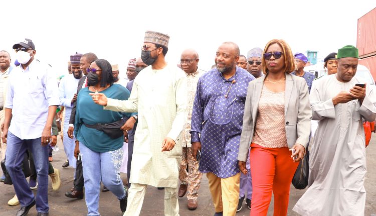 L-R: Hon. Minister of Transportation, Muazu Jaji Sambo, Permanent Secretary, FMOT, Dr. Magdalen Ajani, MD NPA, Mohammed Bello Koko, Exec. Dir., Marine & Operations. Hon. Onari Brown, Exec. Dir., Finance & Admin., Adenrele S. Adesina, Exec. Dir., Engineering &Tech. Services, Prof. Idris Abubakar during the tour of Tincan Island Port Complex last weekend.