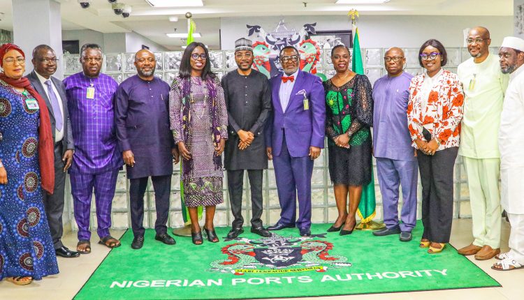 Managing Director, Nigerian Ports Authority (NPA), Mohammed Bello Koko (6 th left), President of Nigeria Chamber of Shipping, Andy Isichei (7 th left) and other senior officers of NPA and Chamber during the visit.