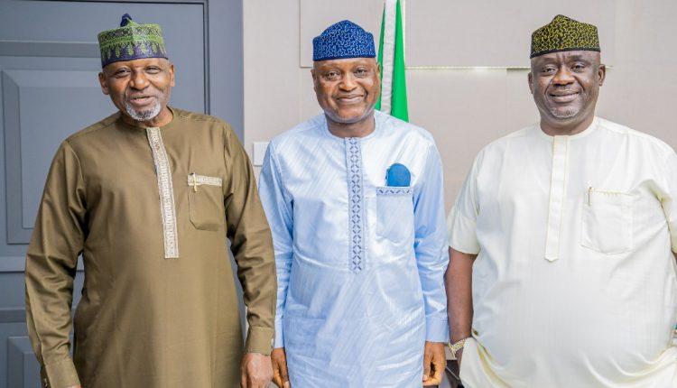 EKiti State Governor Elect, Mr. ‘Biodun Abayomi Oyebanji on a courtesy visit to the Honourable Minister of Transportation, Mu’azu Jaji Sambo and the Honourable Minister of State, Transportation, Prince Ademola Adegoroye at the Federal Ministry of Transportation Headquarters Complex.