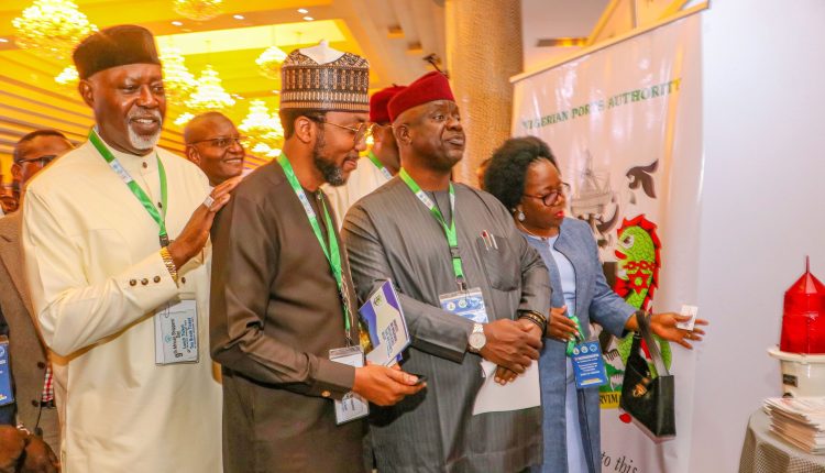 L-R: DG NIWA, Dr, George Moghalu, MD NPA, Mohammed Bello Koko, Minister of State for Transportation, Prince Ademola Adewole Adegoroye, Permanent Secretary, FMOT, Dr, Magdalene Ajani at the NPA stand during the 9th African Shippers’ Day in Lagos.