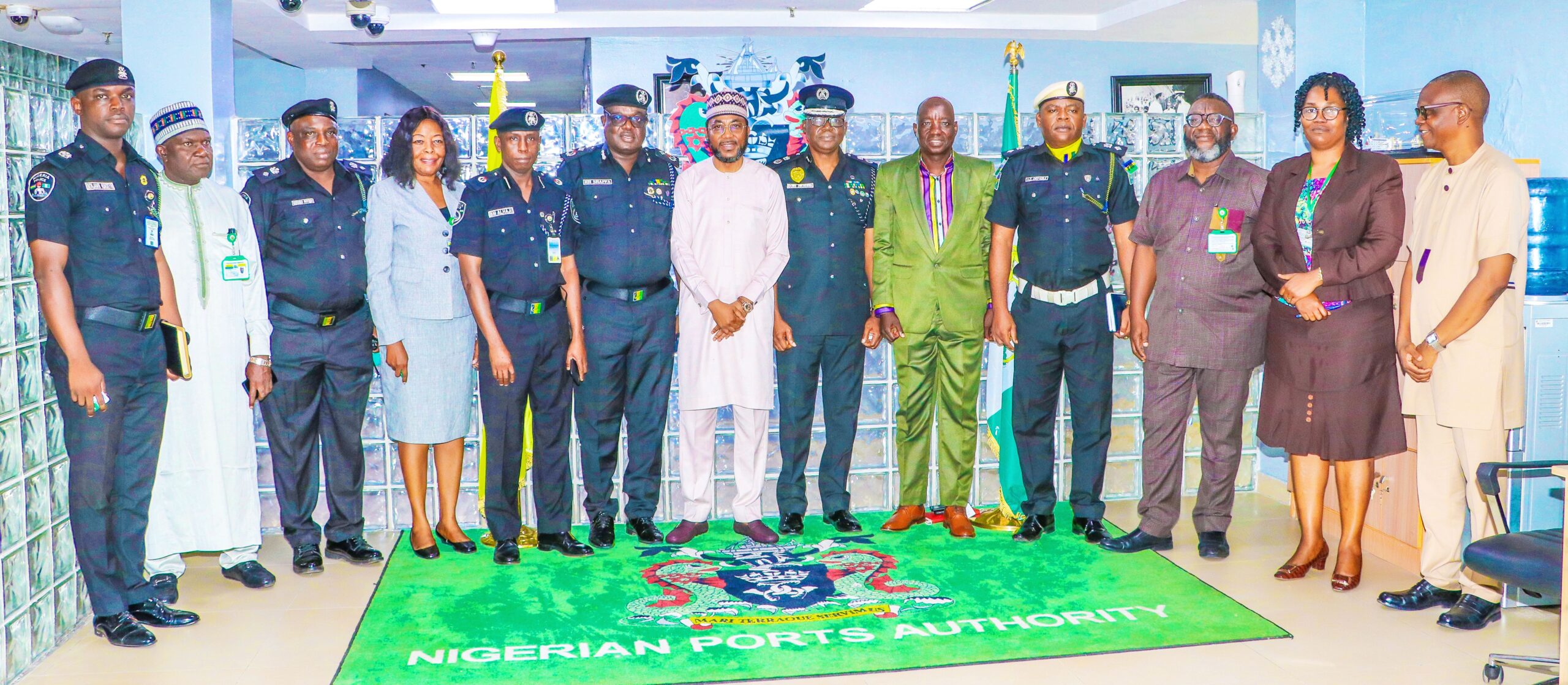 Managing Director of Nigerian Ports Authority (NPA), Mohammed Bello Koko (7th left), Commissioner of Police, Lagos State Command, CP Idowu Owohunwa, other top officials of NPA and the Lagos State Police Command during a working visit to the management of NPA at the Corporate Headquarters in Lagos.