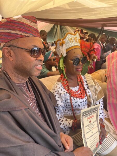 The honour was done Mrs Anishere on 15 March 2025 by His Royal Majesty Oba Cornelius Omisade Agboluaje, Otemuyi 1, Oloja of Ibodi.