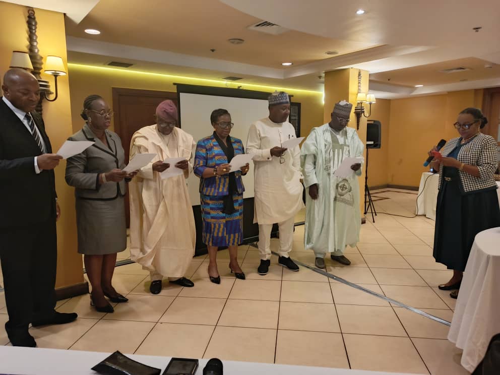The new NPCC Board of Trustees including; former Executive Secretary of Nigerian Shippers’ Council (NSC), Barr. Hassan Bello; CEO, Lelook Bags Academy, Chief (Mrs.) Chinwe Ezenwa, Alhaji Muhammed Bambado, Alhaji Abayomi Adigun, Mallam Bello Gwandu, Mr. Bolaji Sunmola and Mrs Jean Chiazor Anishere, SAN, inaugurated by Hon. Justice Folashade Bankole Oki (Rtd).