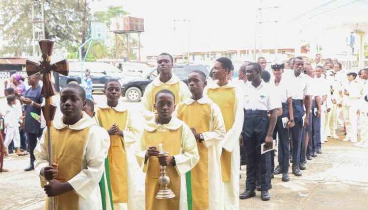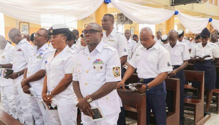 Officers and men from the Headquarters Eastern Naval Command and units under Command in Calabar area, Cross River State, held an Interdenominational Church Service to commemorate the Nigerian Navy 69th Anniversary Celebrations at the Roman Catholic Church, Akim Barracks Calabar.