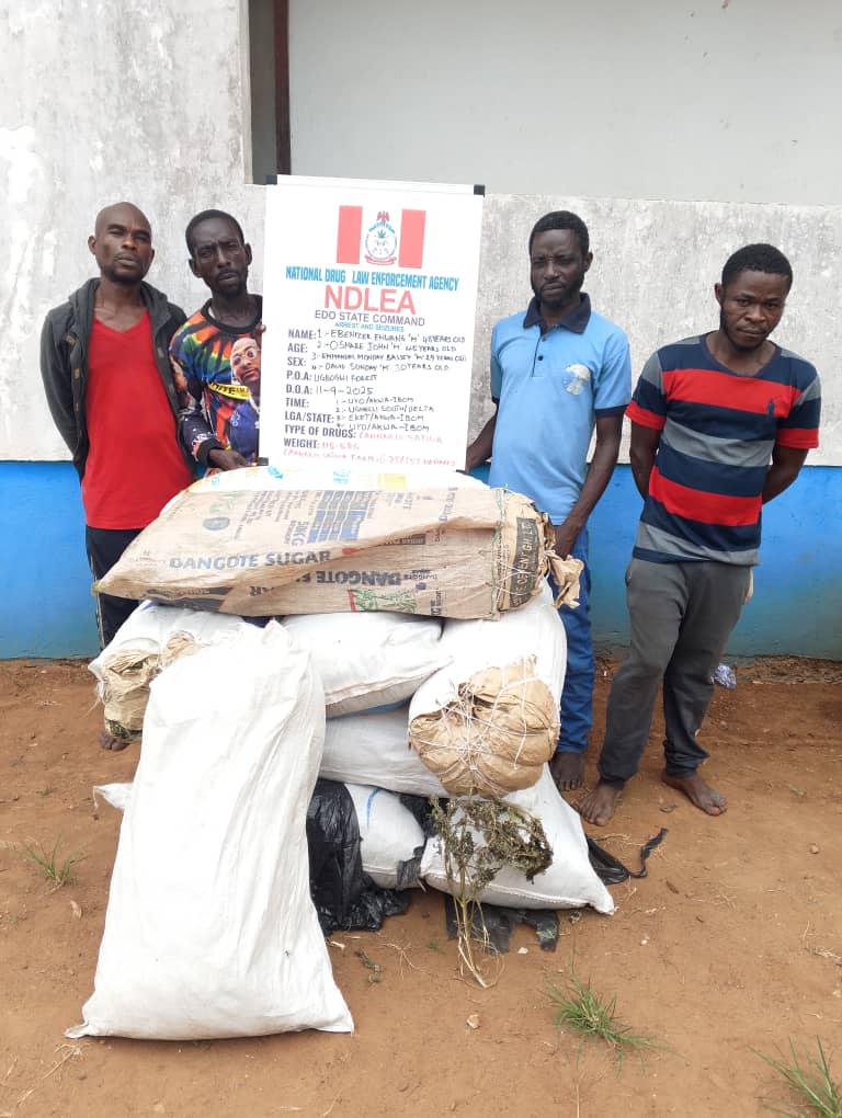 Four male suspects linked to the cannabis plantation were apprehended during the operation while taking refuge at their tents located within the farm. Three of them are from Akwa Ibom State, while one hails from Delta State. They have been identified as Ebenizer E. Wang, 48 years old, from Uyo, Akwa Ibom State, and Oshare John, 45 years old, from Ughelli South, Delta State. Others are Emmanuel Monday, 29 years old, from Eket, Akwa Ibom State, and David Sunday, 30 years old, from Ugad, Akwa Ibom State.