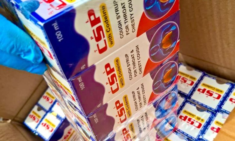 A total of 3,398 cartons, containing 339,800 bottles of codeine syrup, were discovered concealed inside consignments of household utensils. One container (MRKU 3816476) held 1,700 cartons hidden among insulated casserole items, while the second container (TGBU 5399178) contained 1,698 cartons similarly concealed with pearl-plated casserole wares.