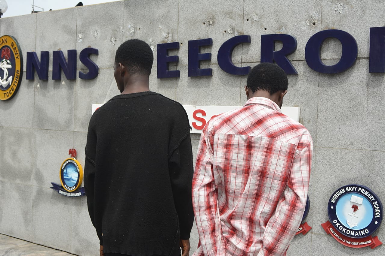 The Nigerian Navy has handed over two suspected stowaways to the Nigeria Immigration Service after intercepting them while attempting to illegally leave the country aboard a vessel in Lagos waters.